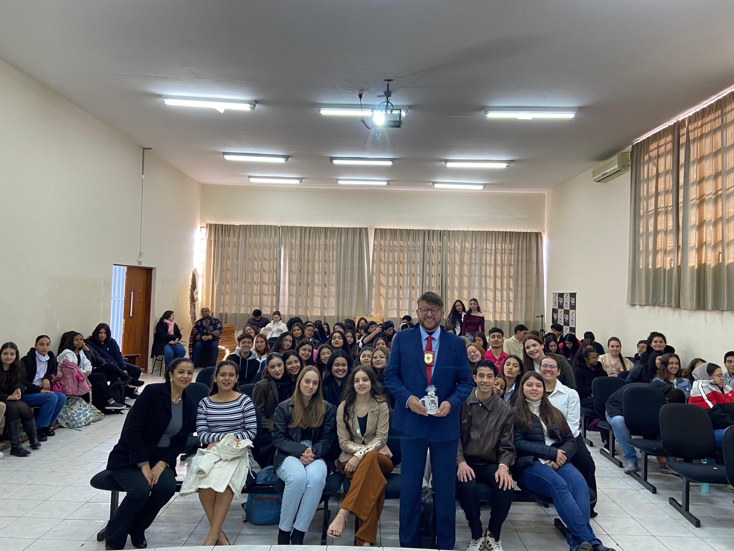 Diversas empresas parceiras da cidade também contribuíram com brindes e com um delicioso café oferecido aos convidados, reforçando a importância da integração entre a escola, a comunidade e o setor produtivo.