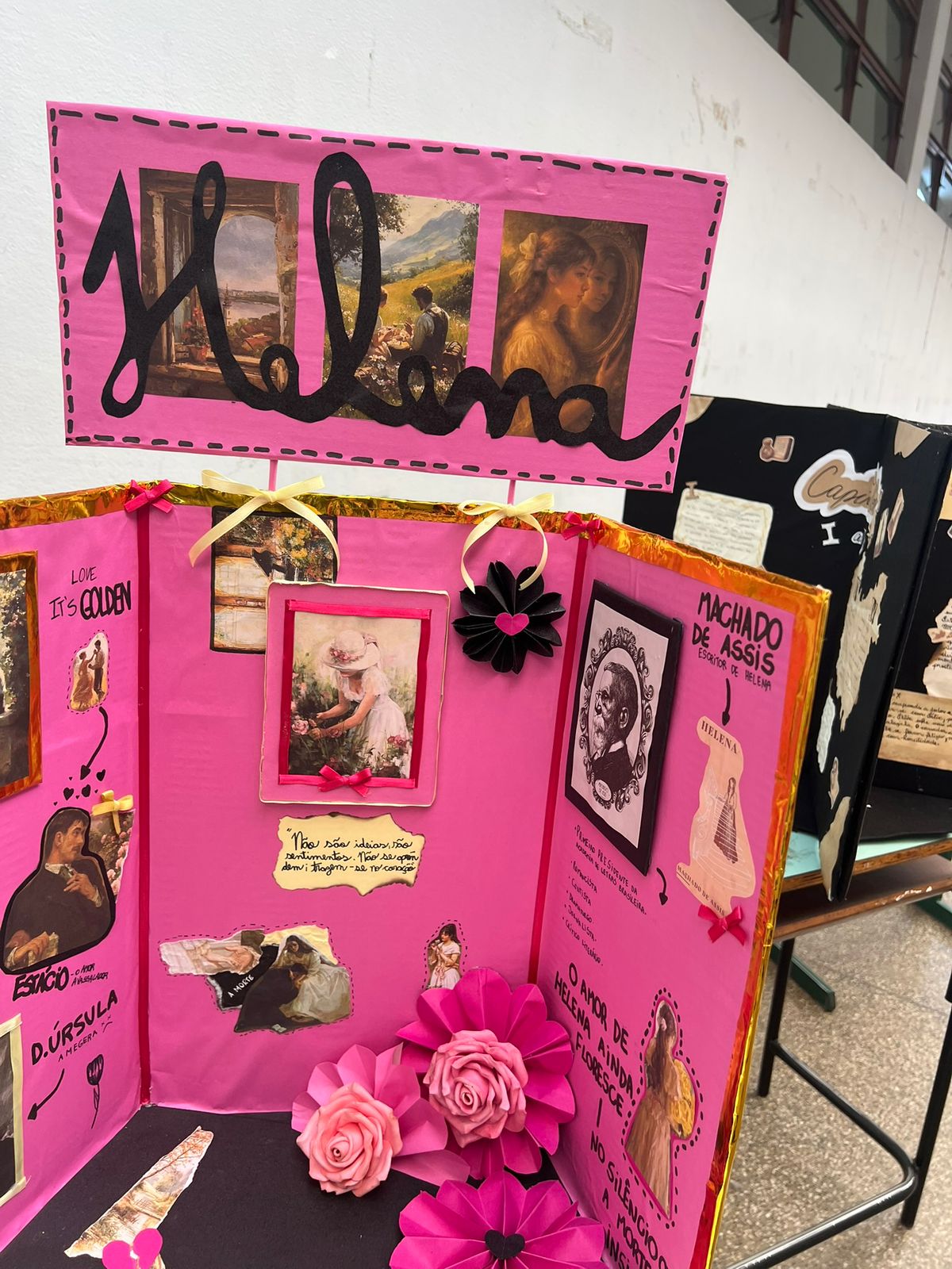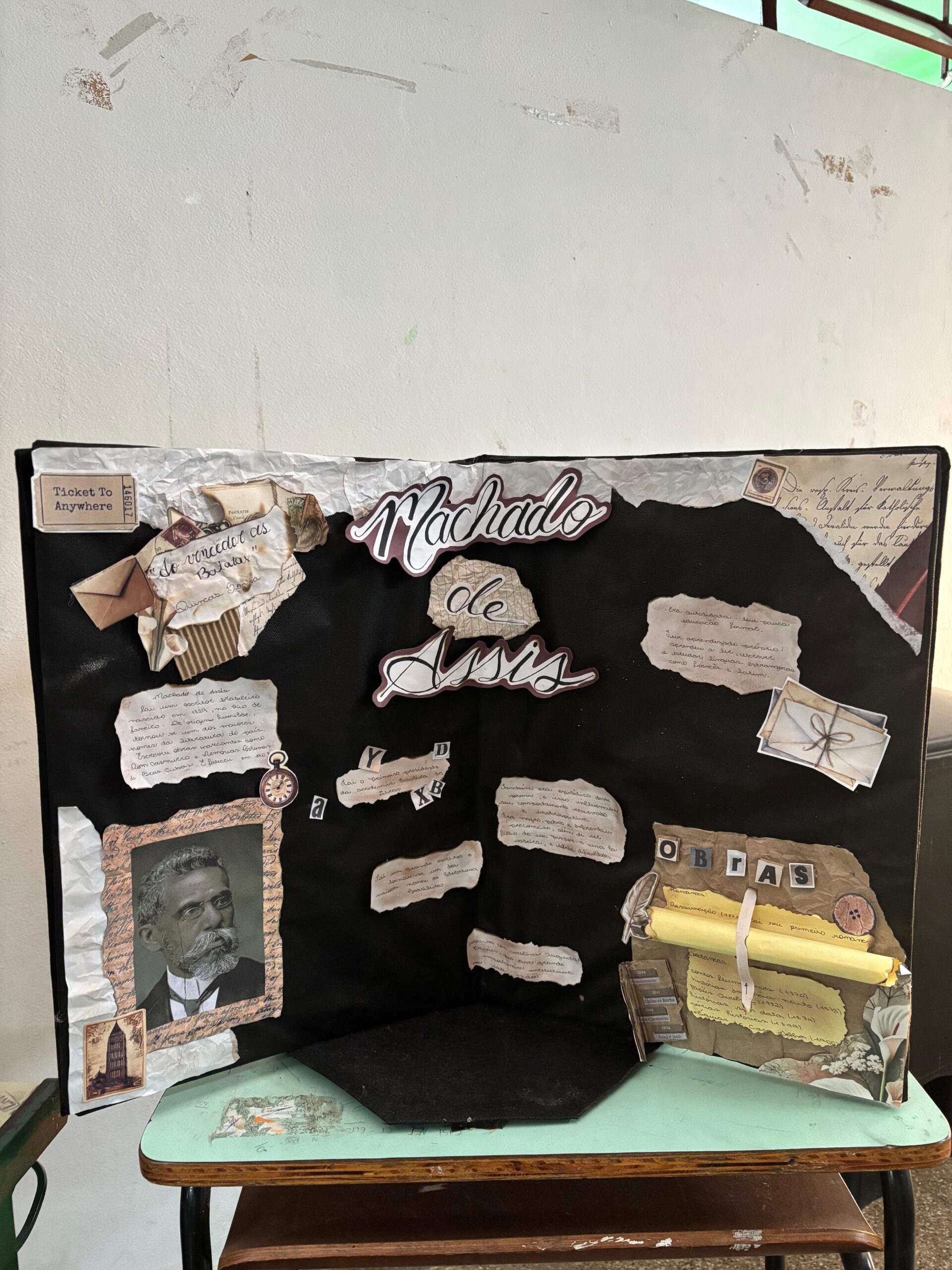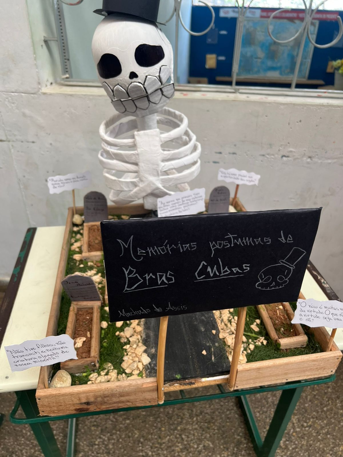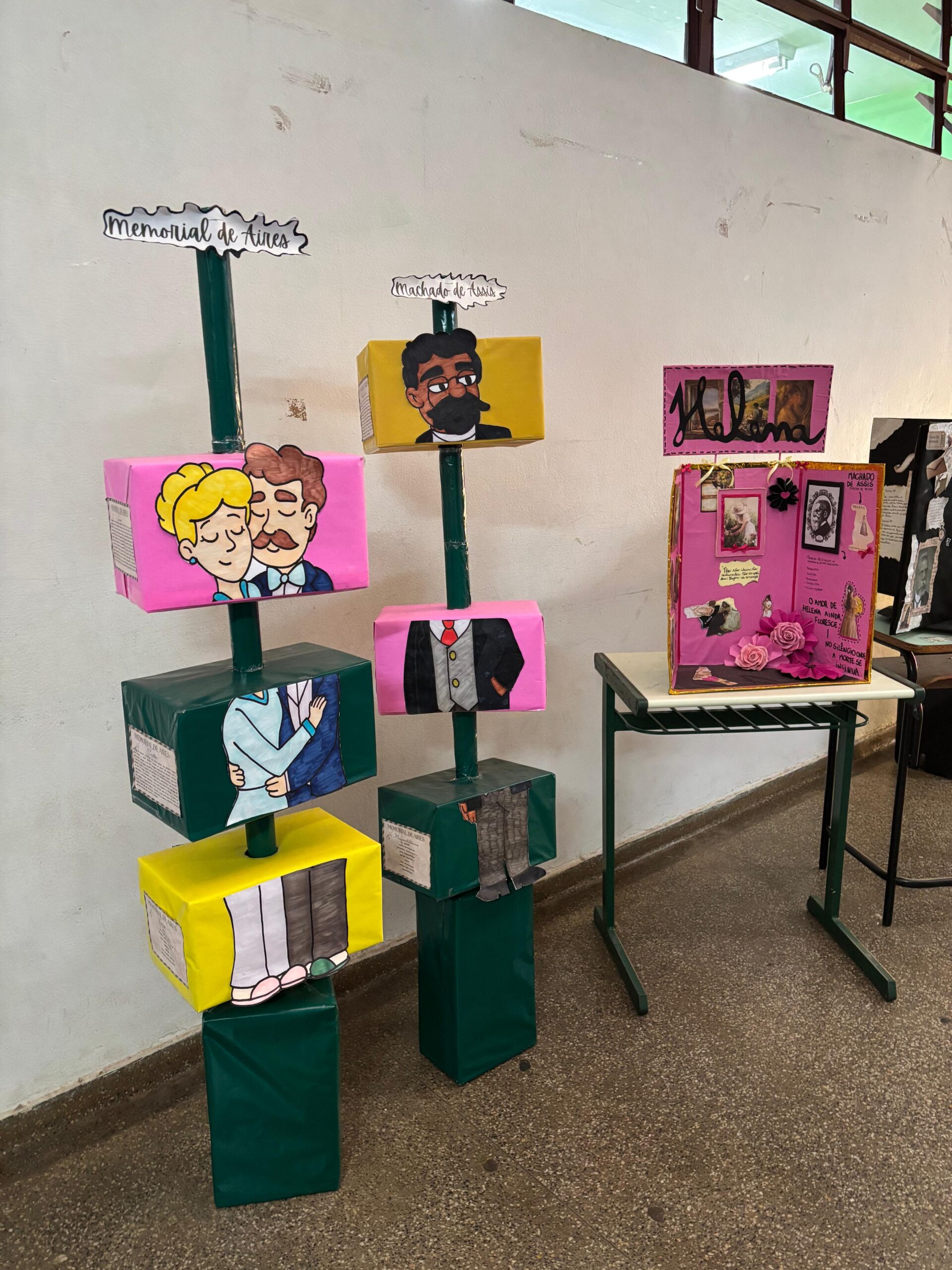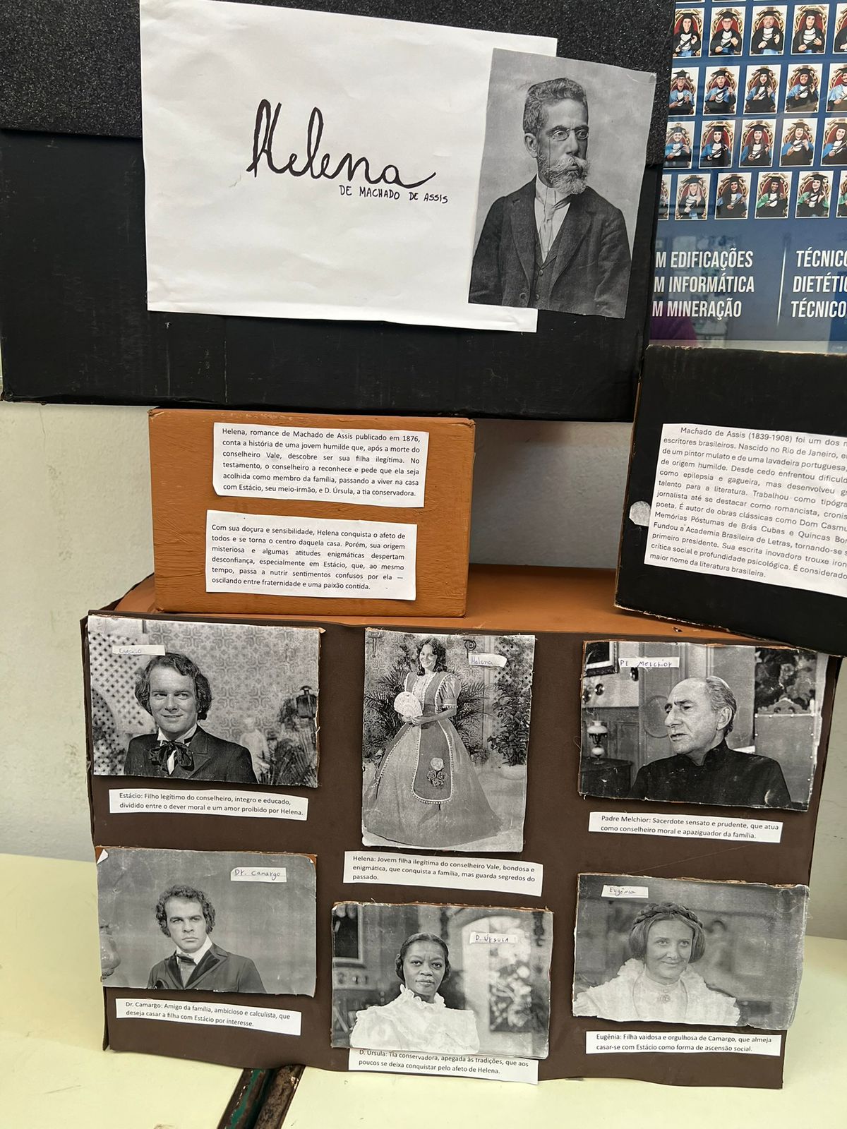 Com muita criatividade os alunos da professora Gislene transformaram nosso corredor em uma exposição de Machado de Assis!