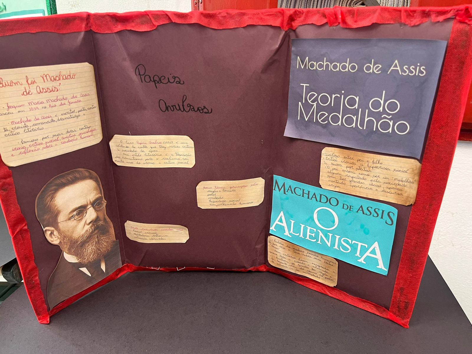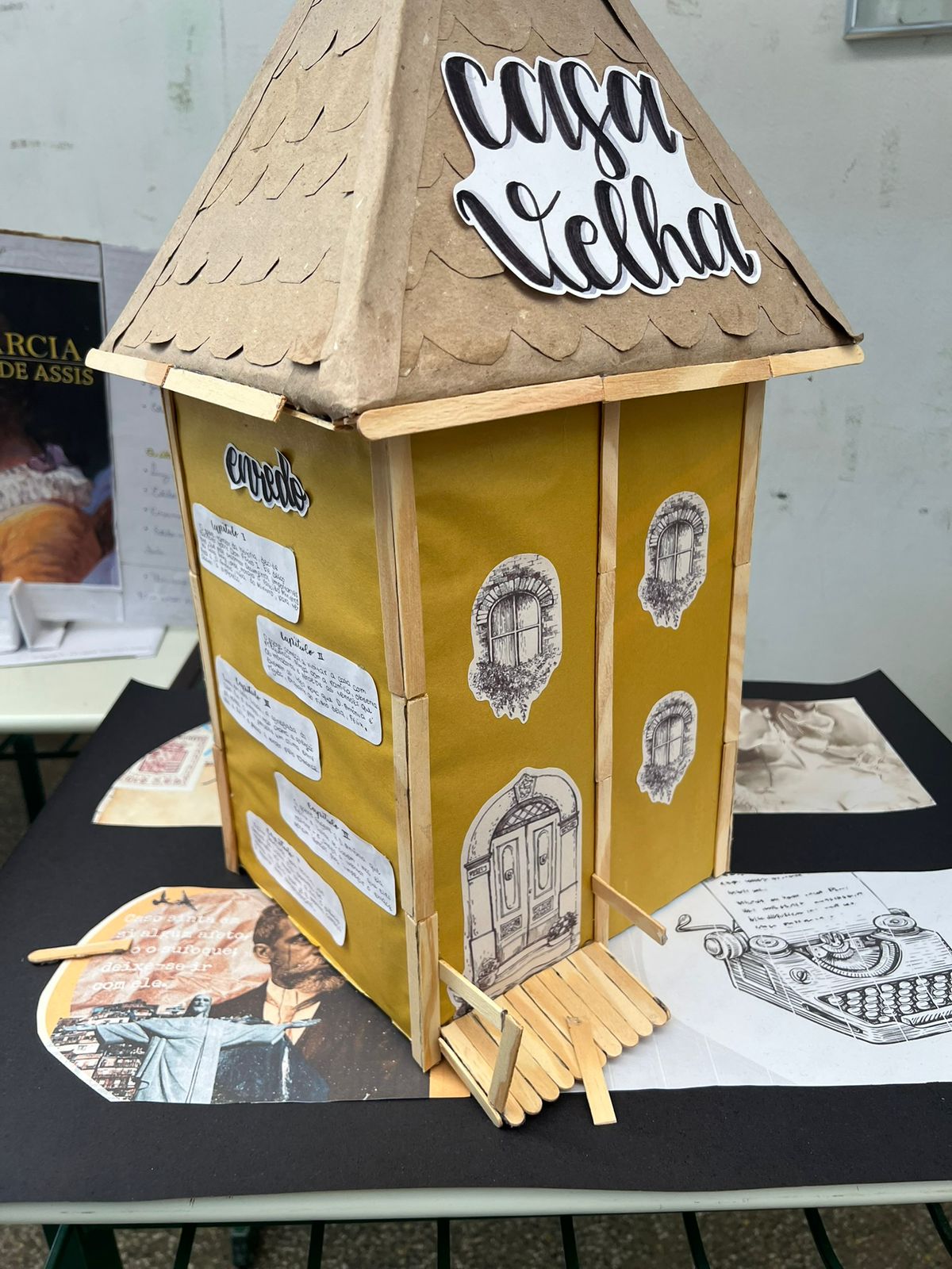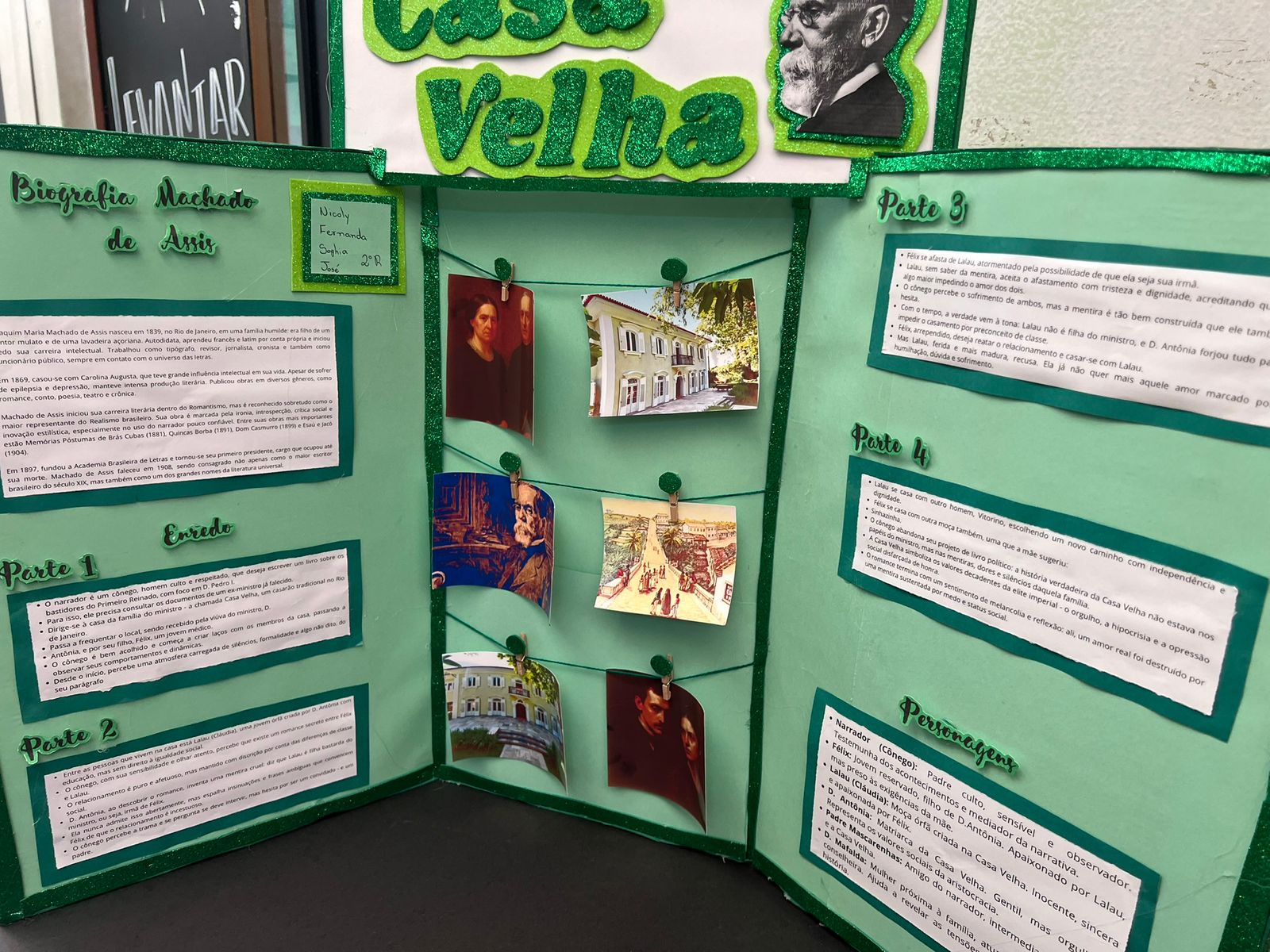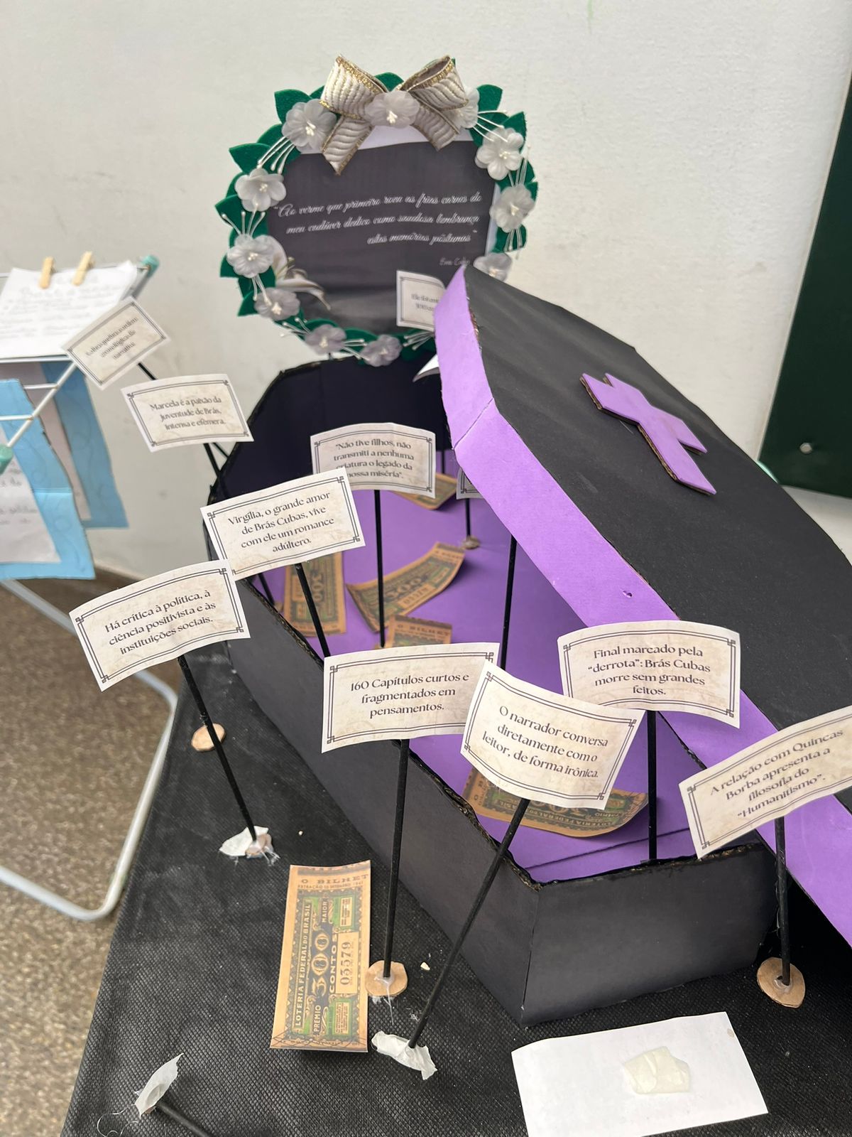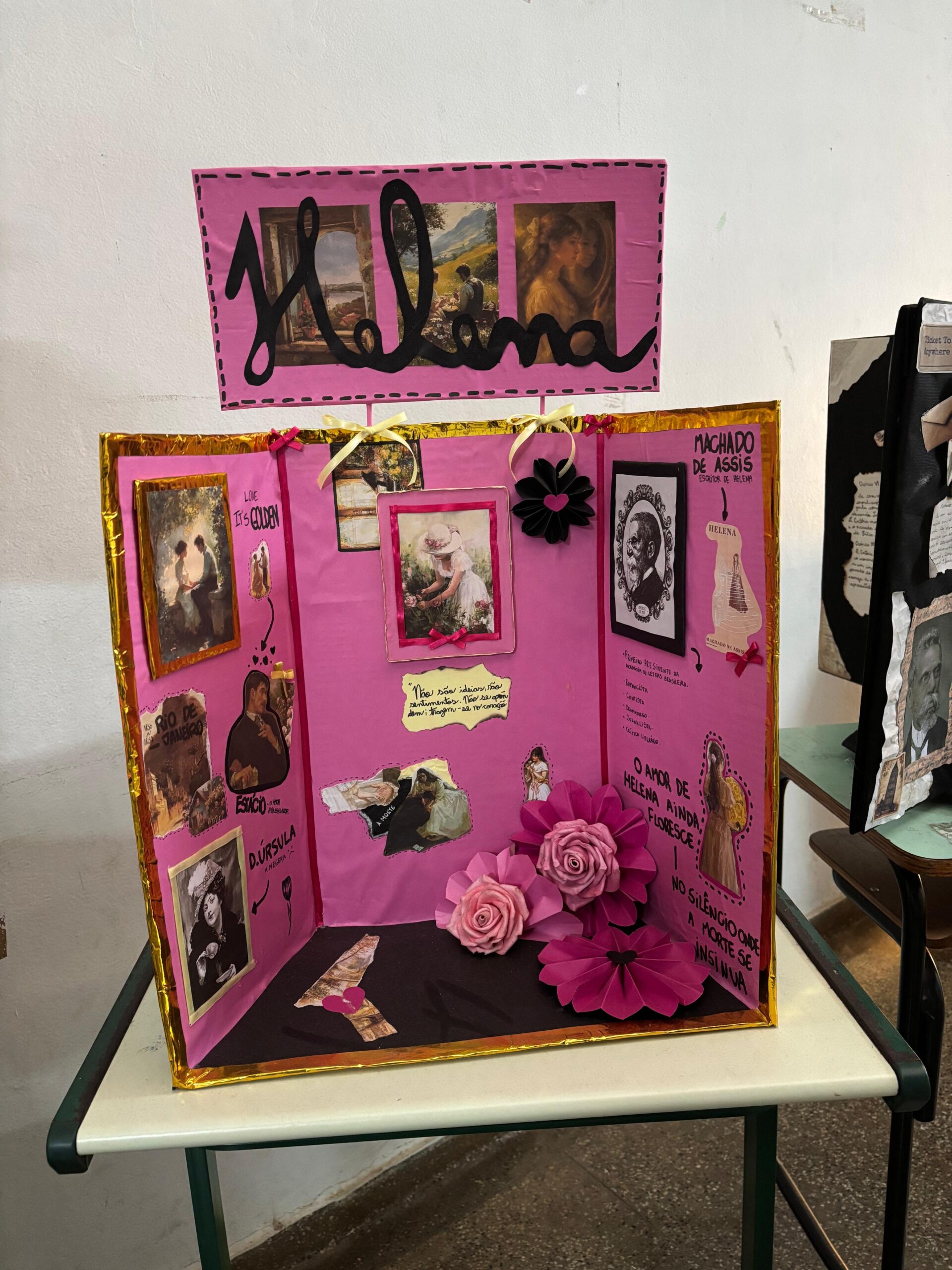 Com muita criatividade os alunos da professora Gislene transformaram nosso corredor em uma exposição de Machado de Assis!