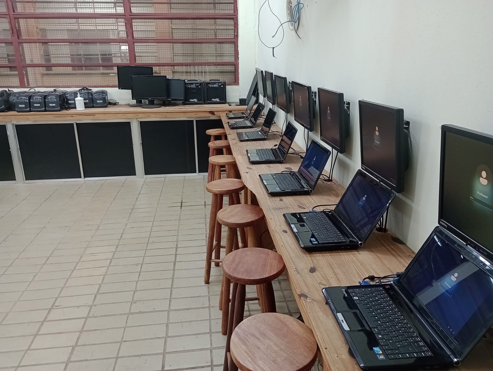 Foram instalados 17 notebooks, cada um com monitor duplo, permitindo maior produtividade e uma experiência mais próxima da realidade do mercado de trabalho. Além disso, diversas máquinas foram deixadas à disposição para as aulas de manutenção, possibilitando que os alunos pratiquem desmontagem, análise de componentes e montagem de computadores.